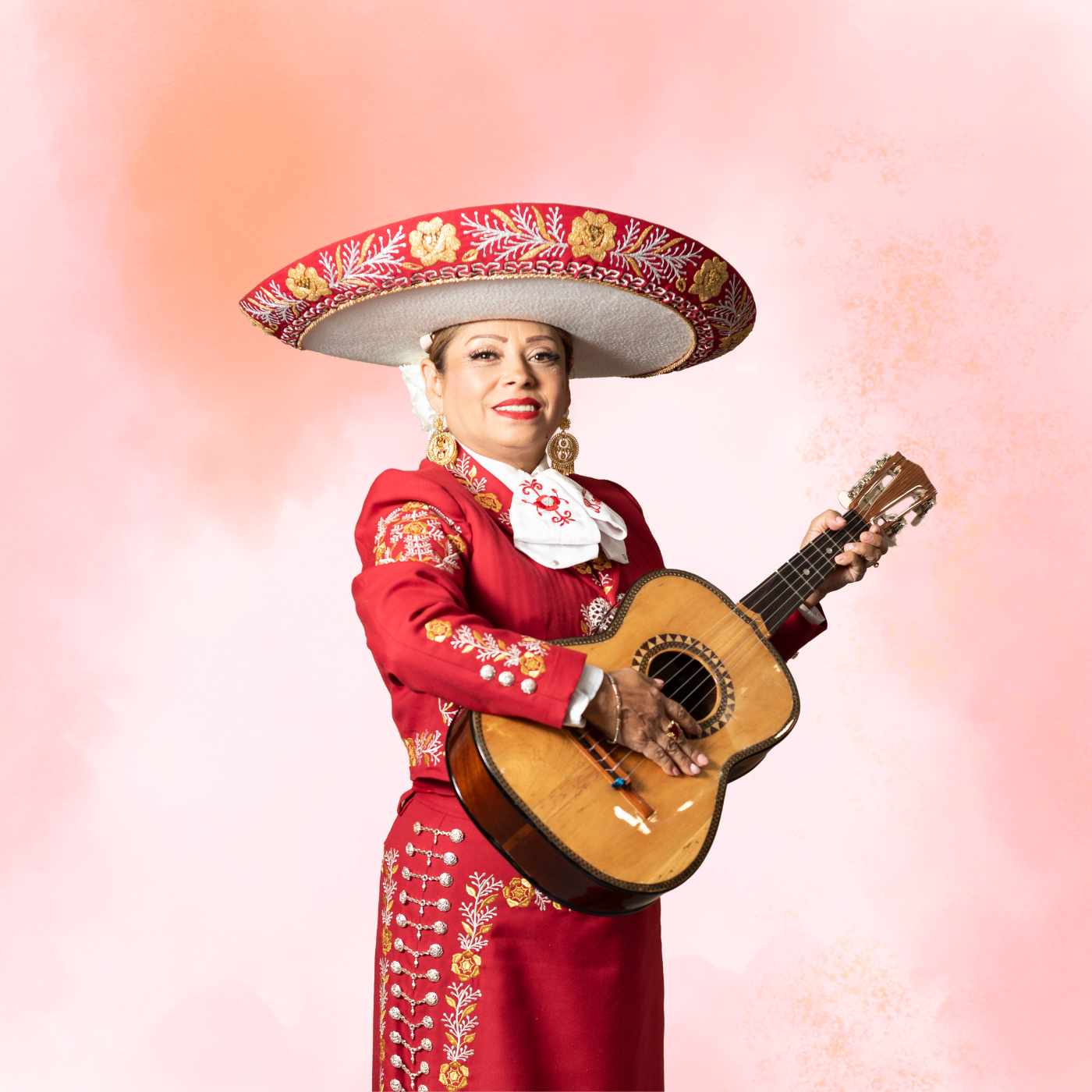 I come from a large family of 14 siblings, six of whom, including myself, have dedicated our lives to mariachi music. My father taught me to play the vihuela with one condition: that I would only play it at family gatherings. I accepted with a big smile, and so began my adventure in the traditionally male-dominated world of mariachi.